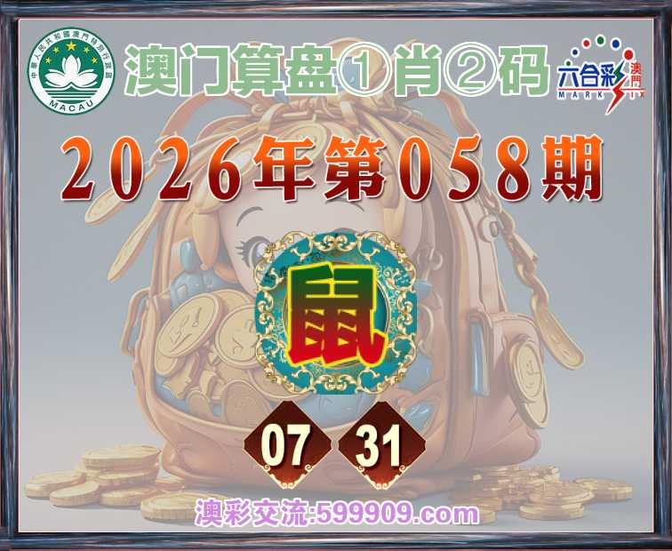 058期:『澳门算盘』 ①肖②码】【07.31】开:鼠31